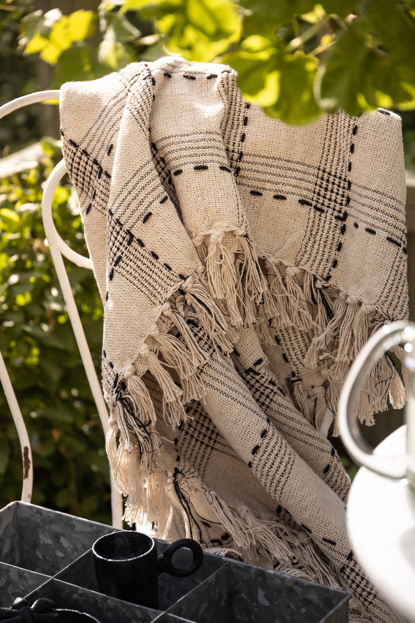 Vékony, kényelmes törtfehér pléd, pamut anyagból.Szürke kockás mintával, rojtokkal. Jól illeszkedik az erkélyre, teraszra vagy piknikre is, esetleg egy téli bekuckozásra, letisztultságának köszönhetően bárhol megállja a helyét.